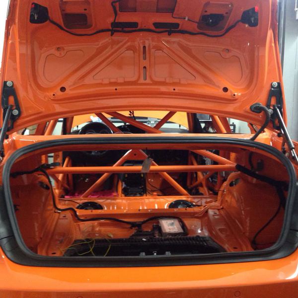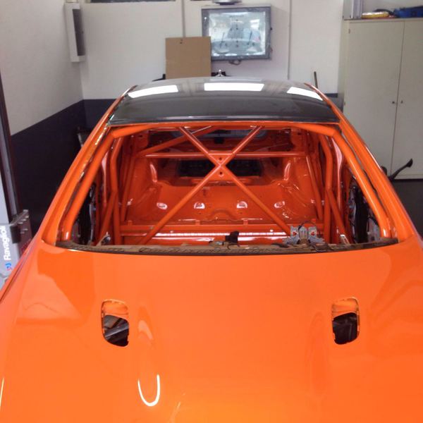 Wir planen, schrauben, messen, entgraten, bis die Stoppuhr lächelt…. Viele Stunden, unzählige Ideen, ungeplante Änderungen und manchmal auch ein paar graue Haare mehr – aber das Projekt E M M A nimmt Form an. Der Motor bekam eine Frischzellenkur (Pleuellager, Ölpumpe). E M M A wurde gestrippt, wir haben eine geschweisste FIA-Sicherheitszelle eingebaut. Der nächste Schritt folgte: kurzer Boxenstopp in der Lackierkabine. Und dann strahlte E M M A in sportlich-elegantem Racing Orange!